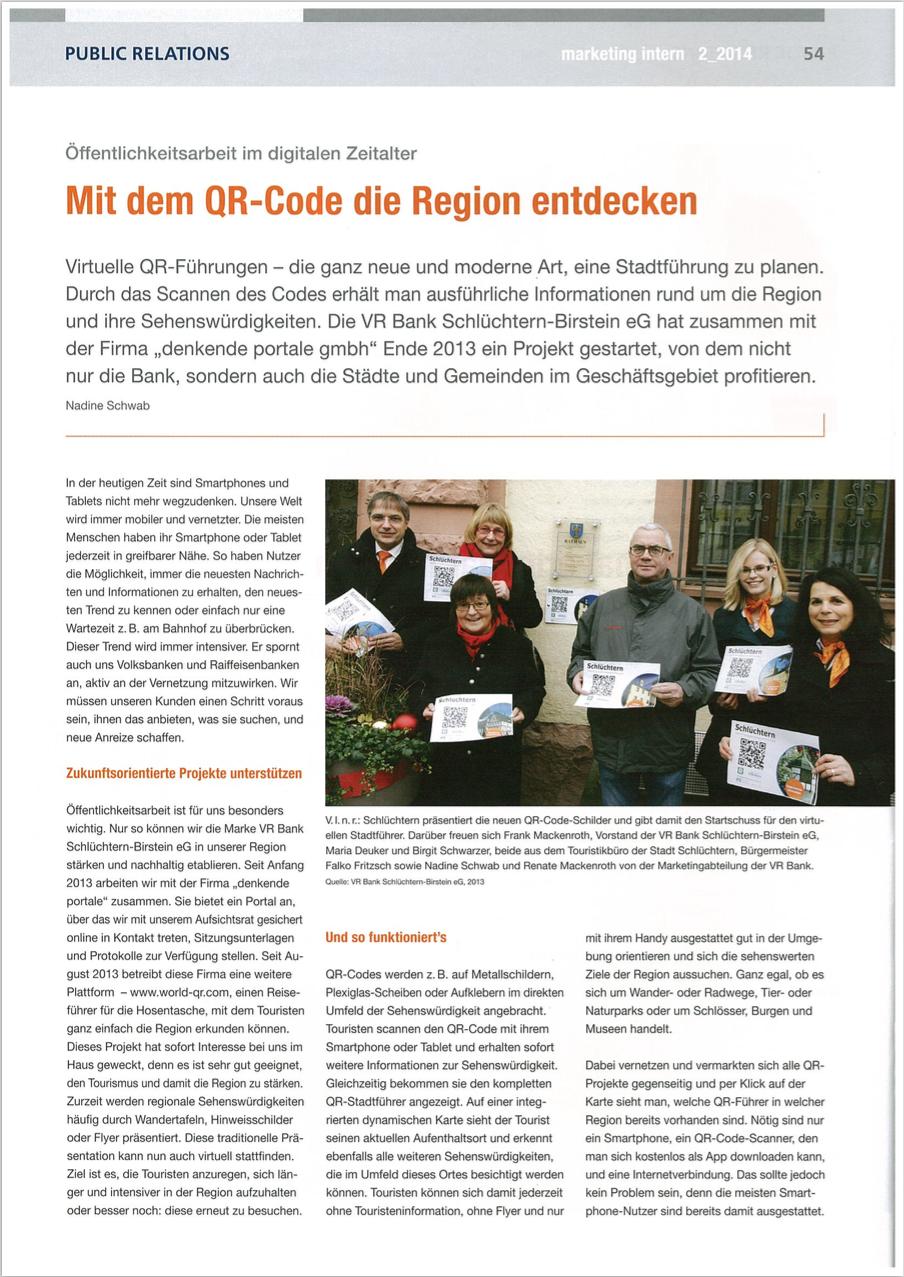 Hier finden Sie ein Beispiel zum erfolgreichen und nachhaltigen Sponsoring in der Region. Das Unternehmen VR Bank Schlüchtern-Birstein eG hat der Heimatstadt einen solchen regionalen Reiseführer gesponsort.
